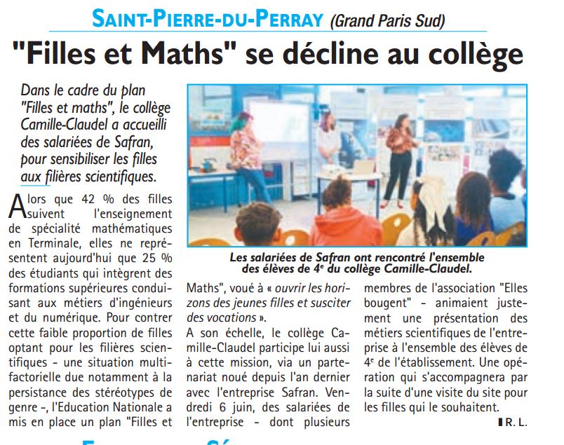 Plan Maths et Filles : Intervention SAFRAN et "Elles bougent"Afin d’ouvrir les horizons de nos élèves et de susciter des vocations, le Collège Camille Claudel a mis en place un partenariat avec l’entreprise SAFRAN et l’association Elles bougent. Des femmes inspirantes ont pu présenter leur parcours d’ingénieure (...)