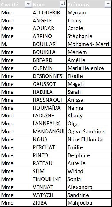 Voici la liste :